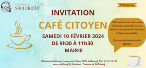 Madame le Maire vous invite à participer à la deuxième édition du café citoyen, Samedi 10 février 2024 de 9h30 à 11h30 en mairie.