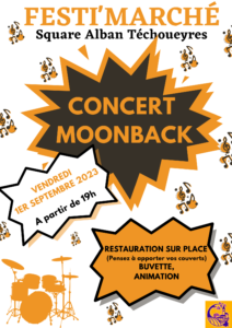Rendez-vous ce soir, vendredi 1er septembre 2023, square Alban Téchoueyres, à partir de 19 heures : Au programme, le groupe Moonback pour une soirée musicale et