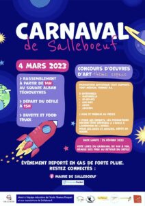 Petits et grands, parés de vos plus beaux déguisements, rendez-vous le samedi 4 mars,14h, au square Alban Techoueyres pour débuter le défilé dans les rues