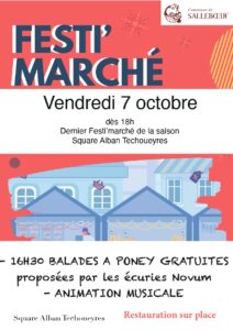 Vendredi 7 octobre dès 18h, square Alban Techoueyres, nous vous donnons rendez-vous pour le dernier Festi’Marché de la saison ! Animation musicale 🎶🎵 Entrée gratuite et