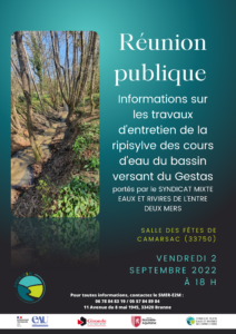 Le Syndicat Mixte Eaux et Rivières de l’Entre-Deux-Mers (SMER-E2M) va engager des travaux d’entretien de la végétation sur le bassin versant du Gestas, dans le