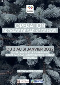 Du 3 au 31 janvier 2022 Lieu de dépôt des sapins de Noël : sur la place entre le pôle associatif et l’église. Vous pourrez