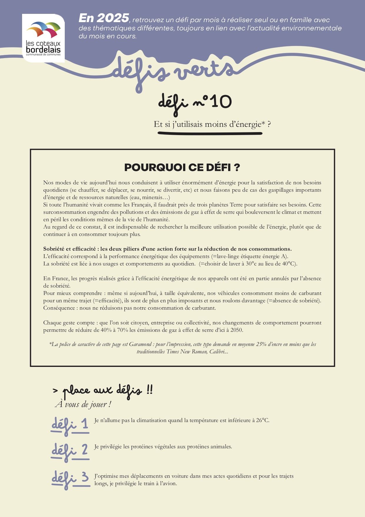 Chaque défi est présenté sous forme de fiches détaillées, expliquant l’enjeu du mois ainsi que les challenges qui en découlent.