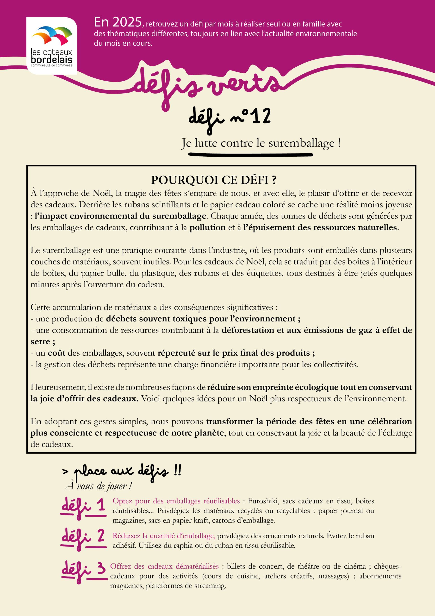 - Défi 12 : Je lutte contre le suremballage !