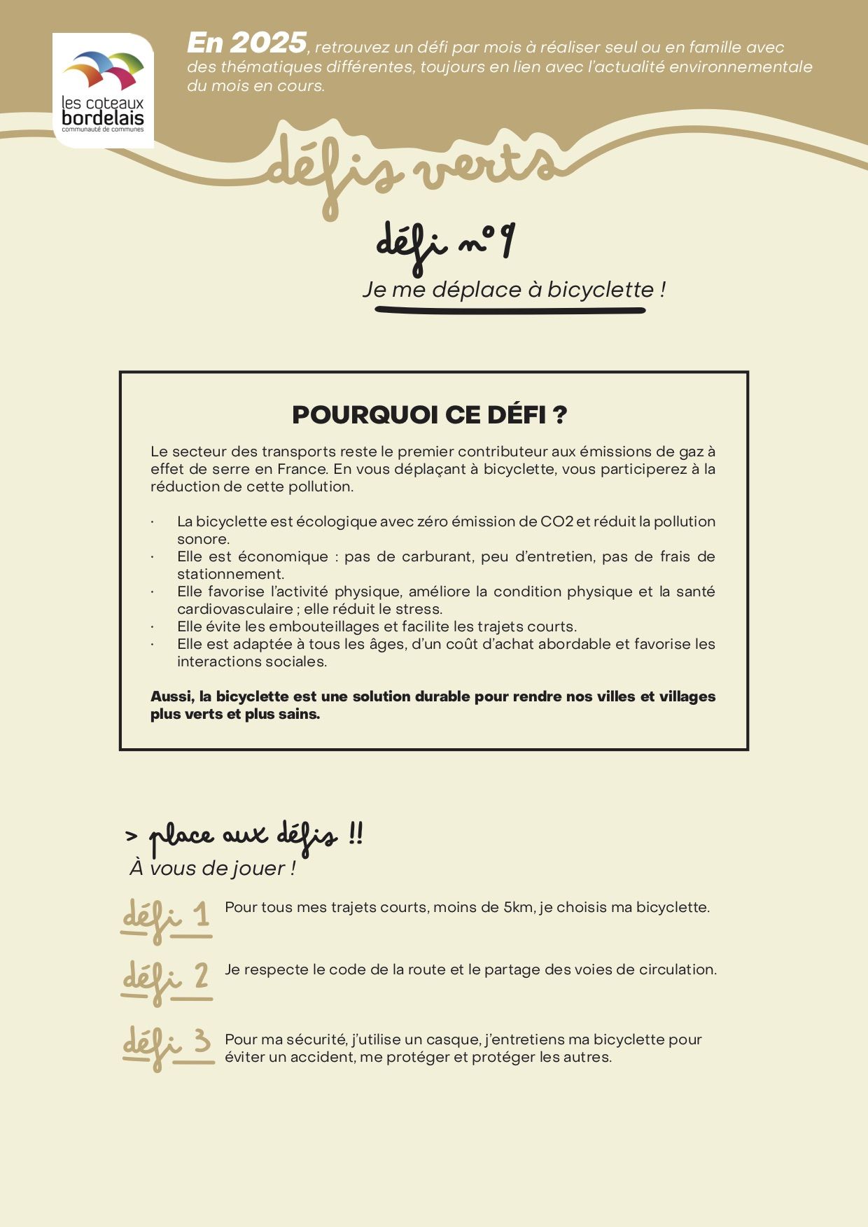 - Défi 9 : Je me déplace à bicyclette !